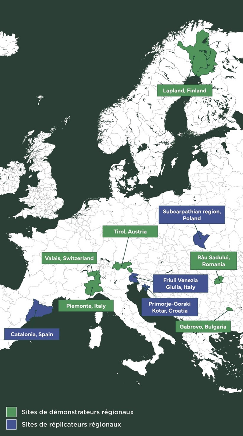 MountResilience est un projet européen d’envergure, lancé en 2023 dans le cadre du programme de recherche Horizon Europe. Il réunit dix régions de montagne à travers l’Europe – de la Roumanie à la Laponie, en passant par le Valais – autour d’un objectif commun : accélérer l’adaptation climatique des régions de montagne. Le programme vise à développer, tester et déployer des solutions innovantes permettant d’améliorer la résilience des communautés locales face aux effets des changements climatiques. En Valais, la FDDM contribue au projet en facilitant la mise en œuvre d’outils, en particulier dans le domaine de la gestion de l’eau dans le périmètre du Val de Bagnes, et en accompagnant les acteurs régionaux dans l’utilisation de ces nouvelles ressources.